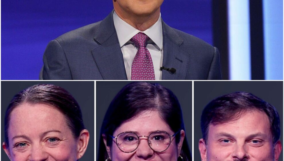 (from left) 'Jeopardy!' Season 42 contestants Molly Murray, Allegra Kuney, and Alan Pyke, on November 6, 2025