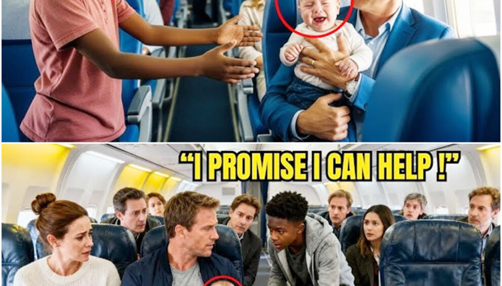 ” Marcus Washington looks directly at her, his voice steady and confident. I can stop her crying in 30 seconds. The cabin falls silent except for the baby’s whales. Every passenger turns to stare at his worn sneakers, battered leather suitcase, his impossible claim. Everything about him screams poverty, insignificance.